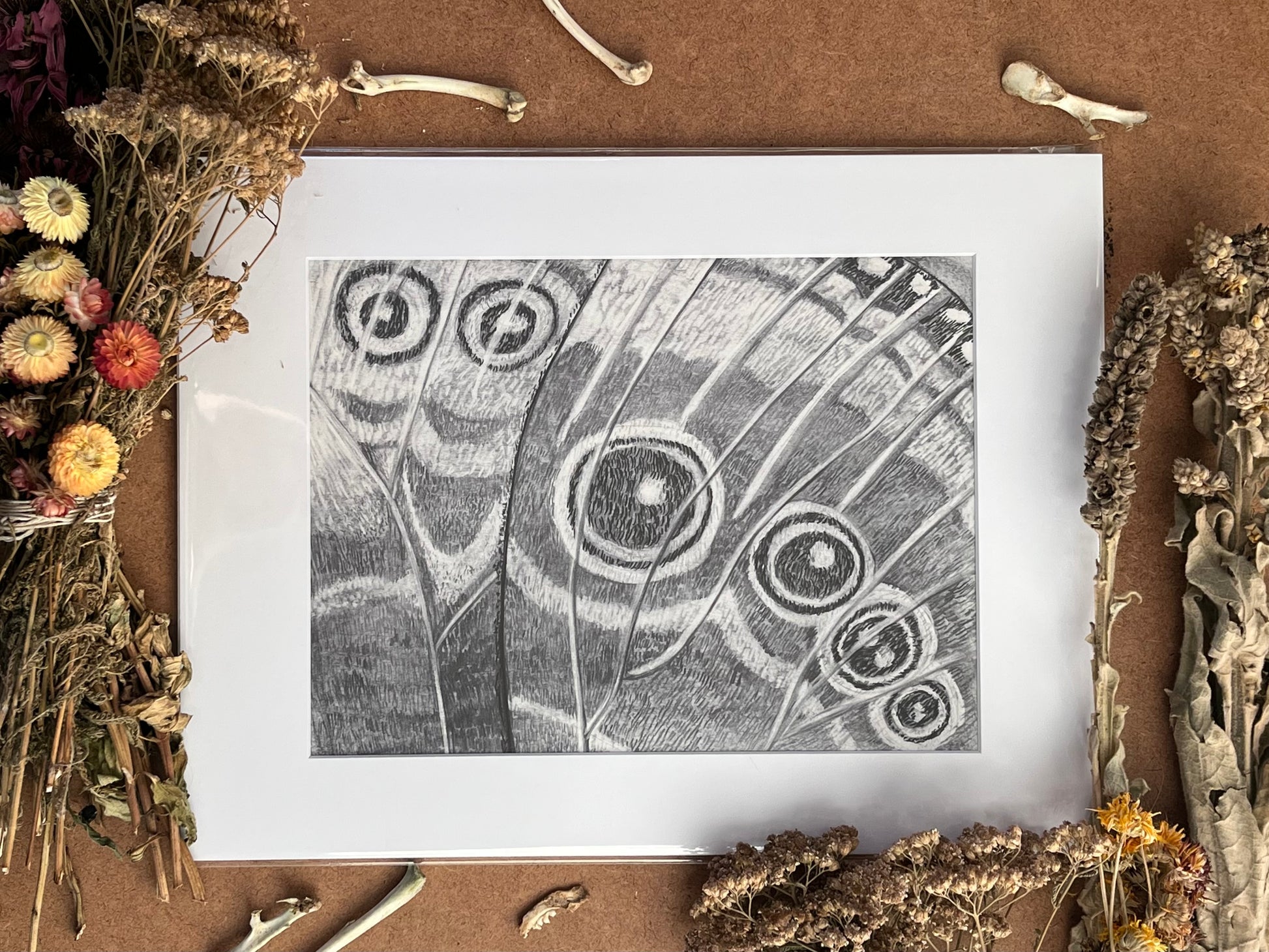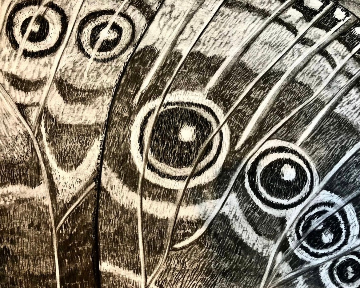 Gorgeous original reductive charcoal art, printed onto archival quality, 100% acid-free cotton rag paper. 9 x 12 in print. Mat included, ready to frame.