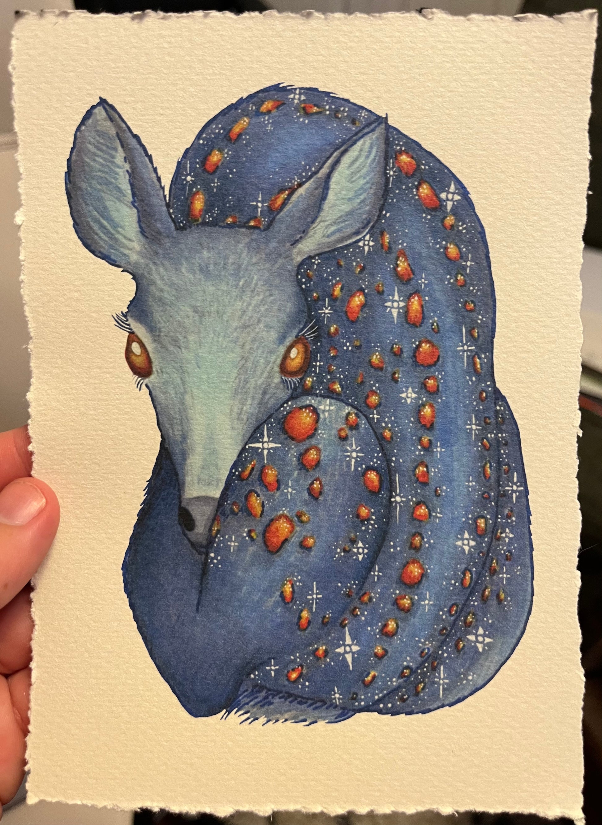 5 x 7 fine art print of original mixed media artwork. Printed onto watercolor paper with deckled edges.