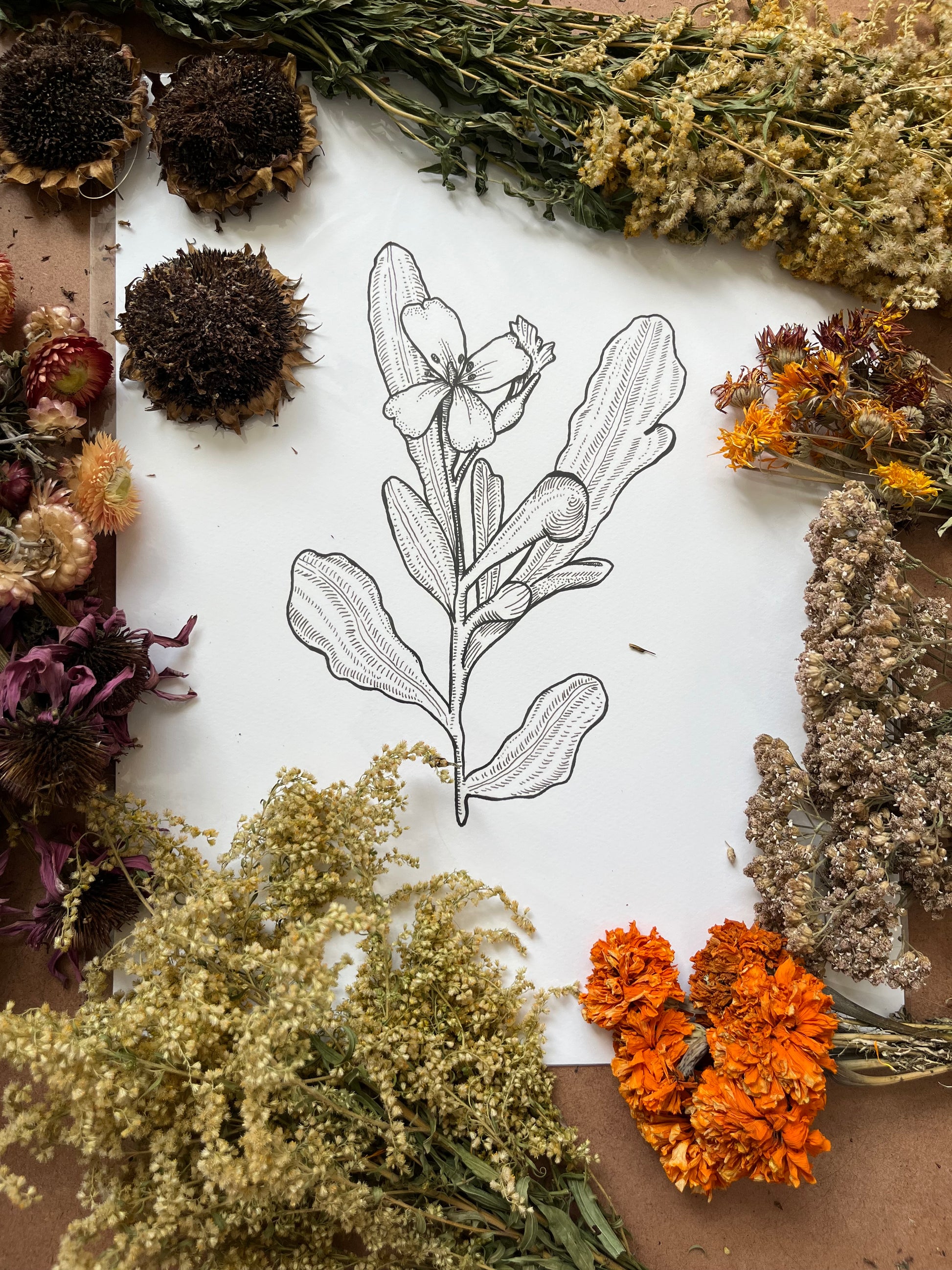 Original line art printed onto archival quality, 100% acid-free water color paper. 9 x 12 in. Packaged in cellophane.